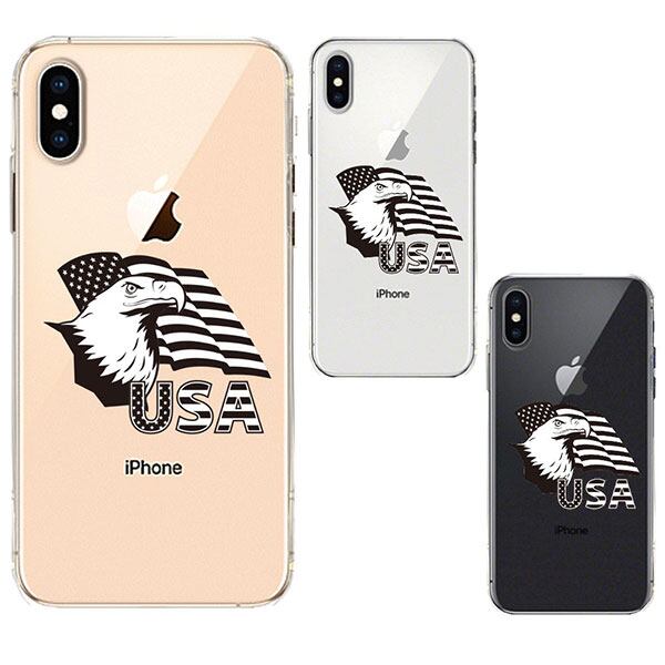 iPhone XS X ケース ソフトケース クリア ワイヤレス充電対応 白頭鷲 星条旗 アイフォン テンエス テン カバー スマホケース